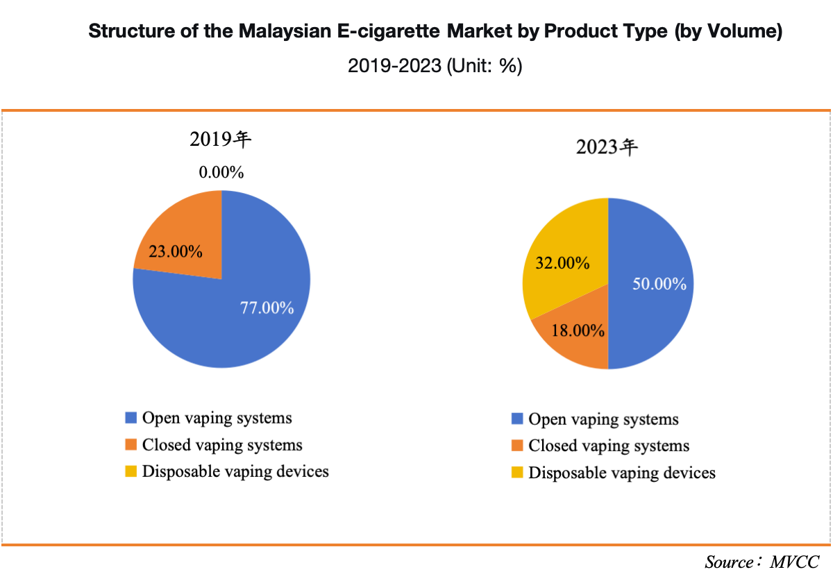 According to the 2023 Malaysian Vape Industry Study released by the Malaysian Vape Chamber of Commerce (MVCC), the proportion of users of open-system and closed-system e-cigarettes declined from 77% and 23% in 2019 to 50% and 18% in 2023, respectively. Meanwhile, disposable e-cigarettes rapidly captured a 32% market share.