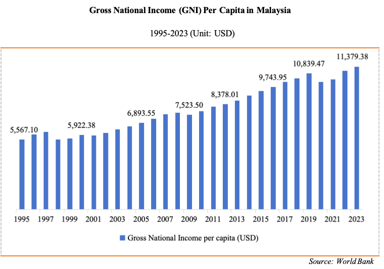 According to World Bank data, Malaysia's Gross National Income (GNI) per capita has fluctuated but generally increased from 1995 to 2023. In 2023, the GNI per capita was USD 11,379.38, a year-on-year increase of 2.92%. The growth in national income provides sufficient purchasing power for disposable e-cigarettes in Malaysia, indicating favorable market potential for the future.