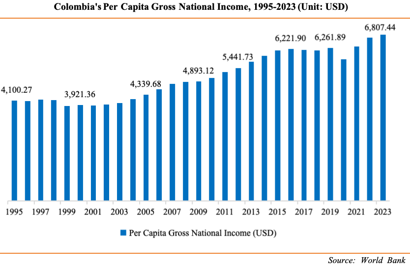 According to World Bank data, Colombia's per capita Gross National Income (GNI) has experienced some fluctuations from 1995 to 2023, but overall shows a growth trend. In 2023, the per capita GNI was USD 6,807.44, a year-on-year increase of 1.88%. The growth in national income provides sufficient consumption power for disposable e-cigarettes in Colombia. Coupled with the rapid growth of the e-cigarette consumer base in Colombia, the future disposable e-cigarette market holds significant potential.